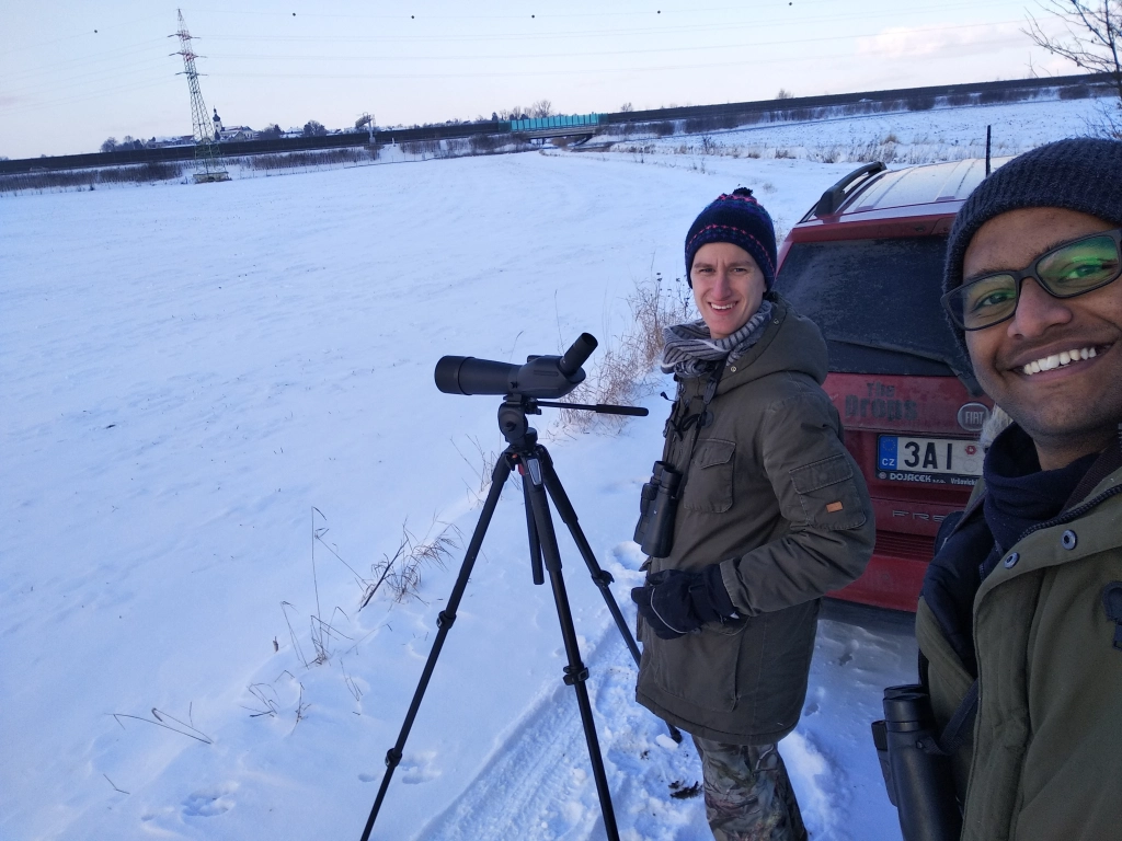 I asked Jan (Honza) Grünwald, who was technically my first Czech friend and whom I had found through eBird and contacted even before getting admitted to the university, if he’d be interested in birding together sometime, because I sure was! We had met (finally) in last October when we birded together on a lucky day, and it was a superb experience for me. There’s something different about being with someone who has vast knowledge of and experience with the country’s bird life. And so, I was eager to bird more with him. In fact, I wouldn’t even mind doing something every week, and I made sure to let him know the same. He turned out to be keen, and wanted to help me get my Czech life list to 200 (it was at 170).
