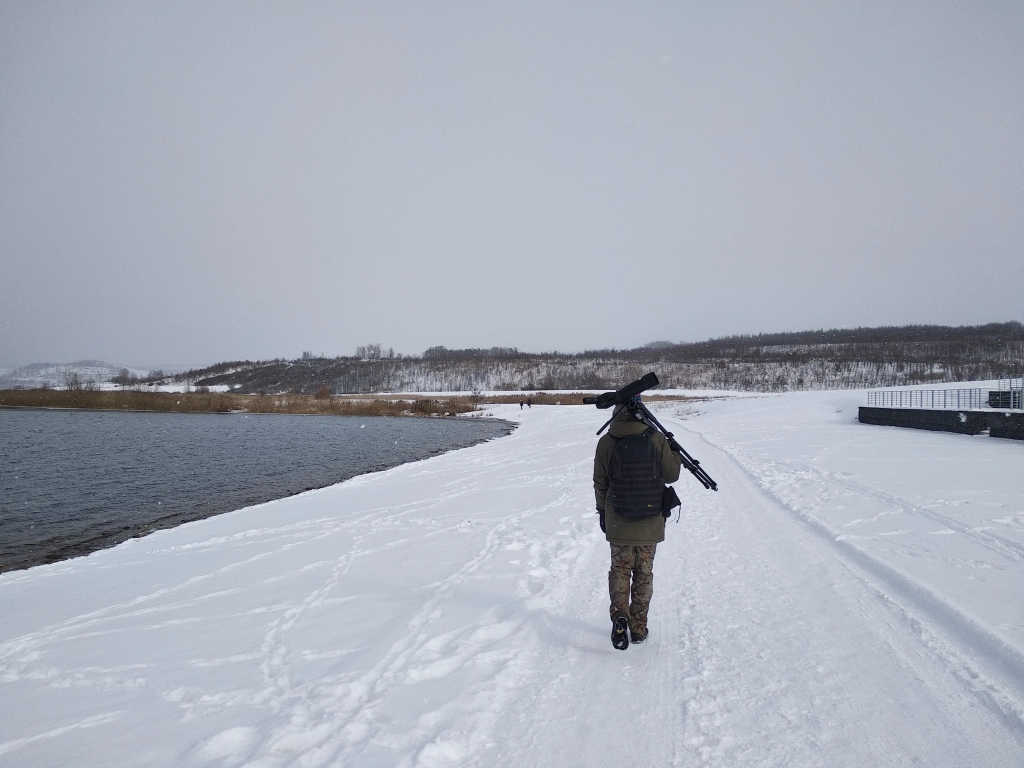 We arrived by 0730 at the first reservoir, Nechranice—a gigantic water body spanning 1338ha (~13sq.km) and the fifth largest reservoir in the country. We first wanted to get an overview of the whole dam and see where the birds are, so we climbed up to a nice vantage point on the wall, and it was painfully cold. Honza was shocked at seeing this huge body of water frozen over, which was a testament to how cold this winter actually has been. Poor birds. We did spot some patches of unfrozen water where birds were concentrated, and boy were there a lot of them! We could make out literally thousands of gulls in the distance, and fewer numbers of other ducks and geese as well. Now that we got an idea of where the birds were, we had to get closer to them.