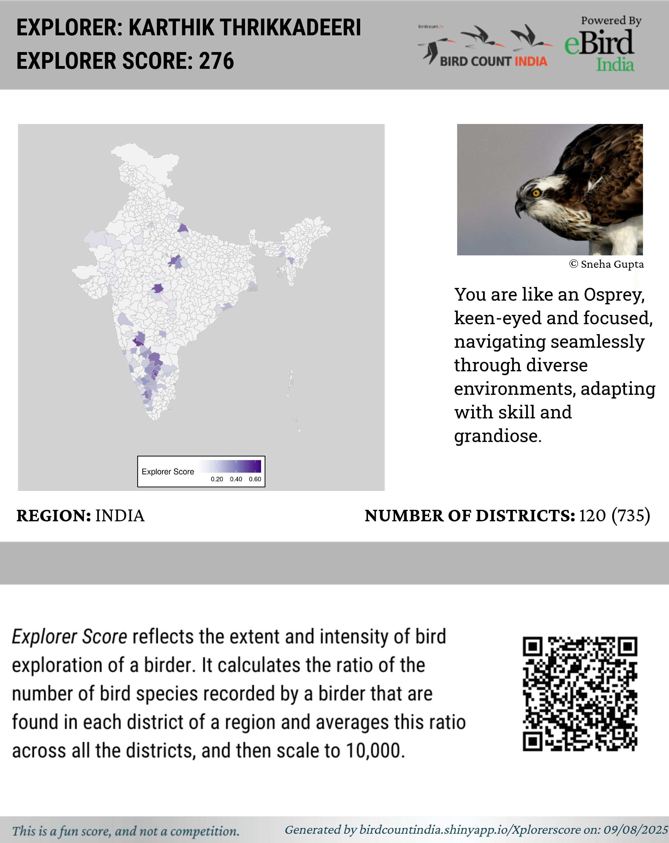 Bird Count India’s Explorer Score assessment. Check yours here!